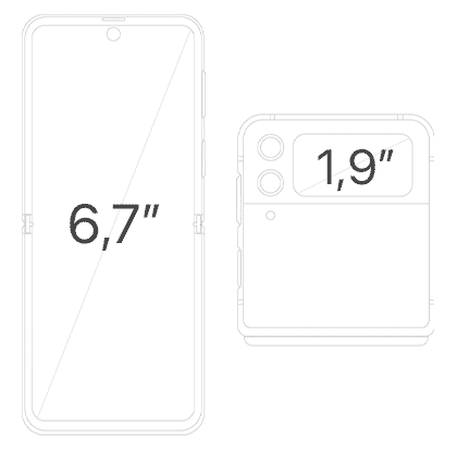 Estos móviles gama alta siguen sorprendiendo con su carácter compacto y manejable, ya sea cuando está abierto o cerrado. Respecto a la versión anterior, vemos que el módulo de las cámaras y la pantalla exterior son de mayores dimensiones y, a la vez, mucho más elegantes.